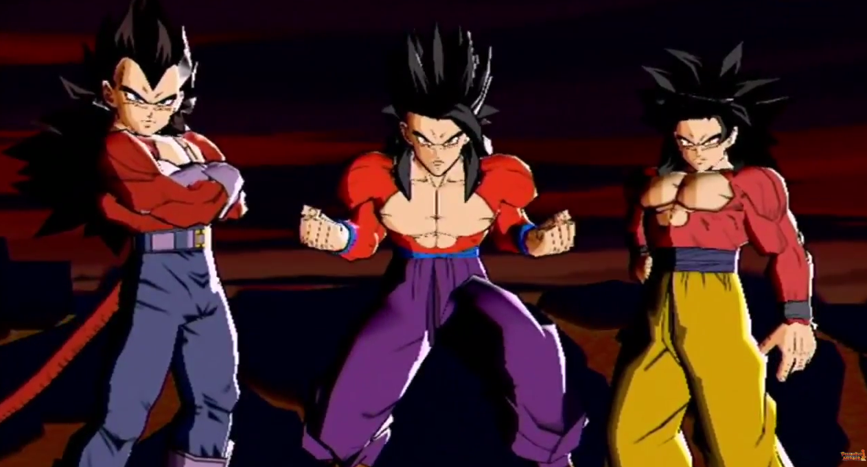 Super Saiyan iv Vegeta, Gohan, and Goku in Dragon Ball Heroes